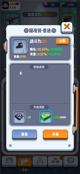 由科技部研发的光学瞄准镜,内置红外扫描,动态捕捉等功能,可操控枪械自动完成瞄准,特工最佳辅助装备。同时,经ZIB总部研发部升级,目前所有的特工装备每凑齐三件相同的装备,即可将装备融合,升级为更强力的装备。至于装备的来源,可以接取局里的任务换取,也可以通过清扫城市里的脏丝来获得,毕竟,脏丝巢穴也有着大量的武器。