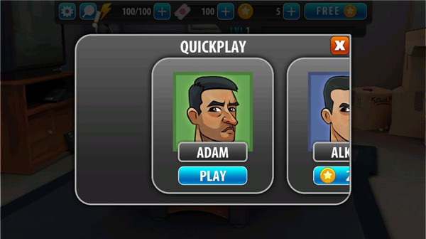 1、选择界面QUICKPLAY开始挑战,点击选择关卡进入,选择角色进入画面,