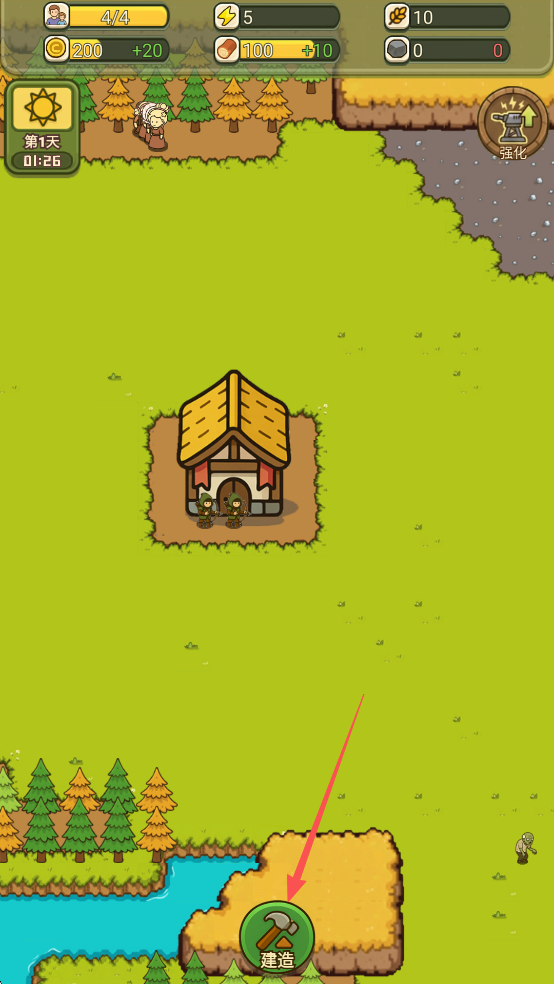 1、在白天,点击建造,可以建造各种建筑,增强村庄的防御体系;