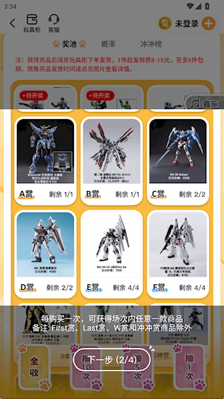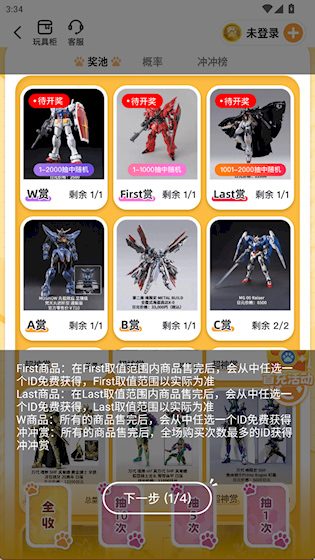 1、选择一个奖池进行抽奖,有4种类型的商品