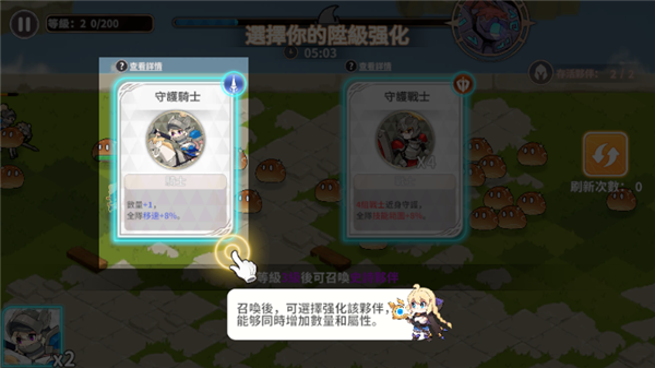 3、点击召唤可以增加一速,可以远距离冲锋的伙伴守护骑士,