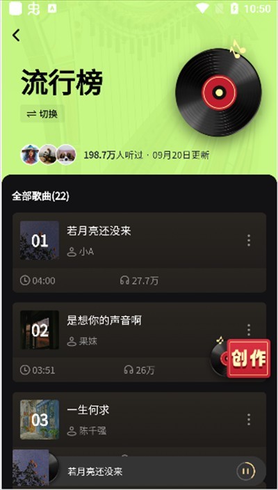 4、界面清爽流畅,听歌与创作模式切换便捷,适配日常。