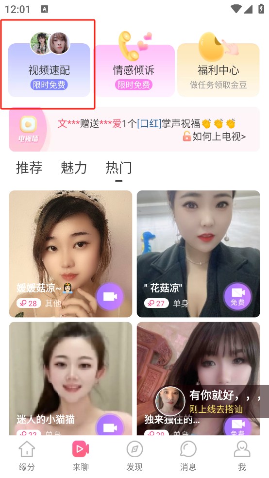 6、无心动对象时,可尝试视频速配碰运气,邂逅契合之人。