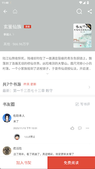1、在作品详情界面点击免费阅读