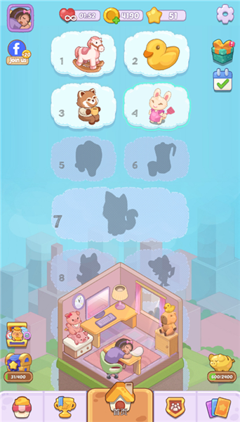 1、拥有丰富多样的小物件解锁体系,游玩过程中可不断解锁家具、装饰等各类好物,随心搭配摆放,亲手打造独属于自己的温馨小家,沉浸式体验布置家园的乐趣与成就感。