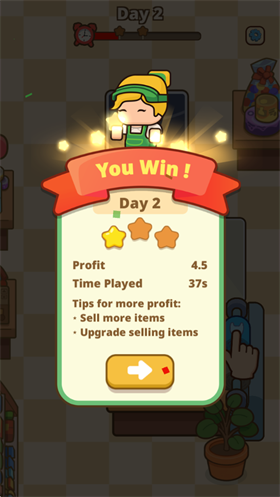 4、轻松又令人上瘾的商店管理体验:操作简单易上手,无需复杂的策略规划,新手也能快速入门;从基础小店起步,逐步升级店铺规模、解锁更多功能,看着自己的店铺从冷清变得火爆,从简陋变得精致,成就感满满,轻松体验经营乐趣的同时,让人越玩越上瘾。