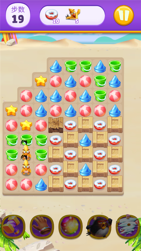 通过消除特定组合可触发炸弹、彩虹鸟等强力道具,帮助清除顽固障碍或快速完成任务。