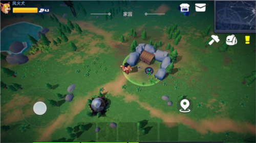6、现在大家就可以穿上衣服拿上武器出去打怪(捡垃圾)了。这里给大家科普一下大概的地图的布局,一开始新手最好是去左边这个浅草滩的地图,怪物等级低,难度不高,如果被打可以直接吃红果子回血,前期升级快,很快就可以到达5+级,之后大家可以回家造一点储物箱,把东西都储存一下,然后去右边的这个小树林,这里的怪物比较厉害,大家要小心一点,尽量步步为营,当物资装备比较齐全后,大家可以去家园的左上,有一个叫石坑的地图,这里面石矿和铁矿较多,但是怪物攻击较高,大伙也要小心对待。
