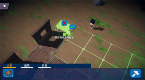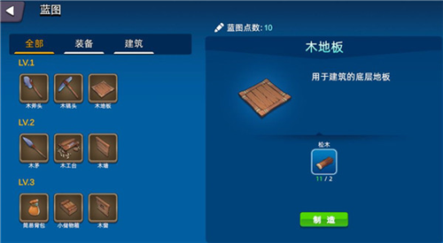 3、采集了资源之后,大家可以点击小锤子按钮,打开蓝图,先做一个木地板,因为工作台之类的建筑必须要放在木地板上面才能使用,所以一定要先在地面上铺上木地板。