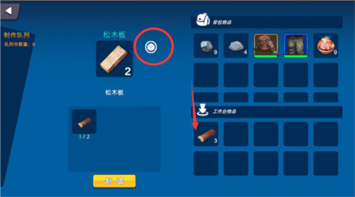 5、工作台的使用:大家可以点击物资,选择放入工作台的储物箱,然后点击左边你想造的物品进行制造。造完了之后可以点击那个白色的图标,拿取工作台已经造好的物品。