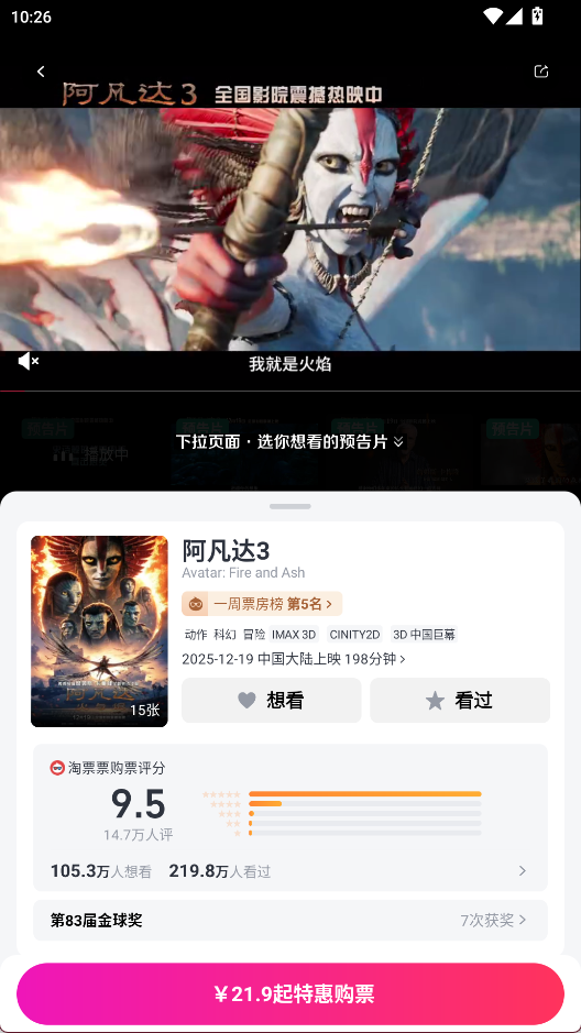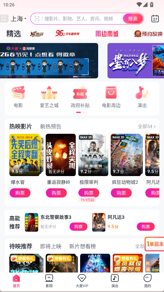 淘票票是一款电影与演出票务服务应用,提供便捷的在线选座购票体验,整合丰富的影院与演出场馆资源,可以轻松查询排片信息、实时票房及上映日程,享受会员专属优惠,汇聚了大量娱乐资讯、幕后花絮和专业影评,是日常文化消费的好帮手。