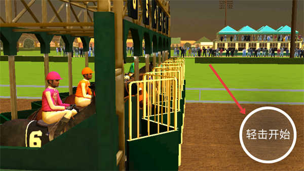 1、在赛前准备界面点击【轻击开始】,让马匹进入赛道闸位,准备开启赛事角逐。