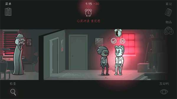 3、解谜元素:要前往小镇的各个区域展开实地调查,调查过程可通过检查现场物品、针对性询问嫌疑人等方式推进,不同的调查行动会消耗不同的时长,需合理规划行动步骤。