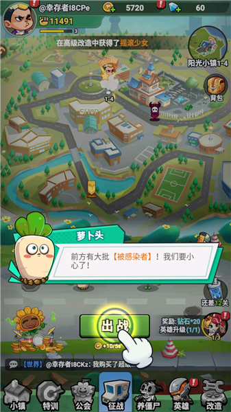 英雄形象采用Q萌风格打造,兼具辨识度与趣味性,例如战士定位的“藕巴”,拥有击杀增伤的专属特性;辅助定位的“机械天使”,提供全体治疗效果,各类角色造型可爱讨喜。僵尸反派形象偏向滑稽搞怪,弱化恐怖感,整体视觉风格贴合全年龄段玩家,大幅提升游戏的亲和力。