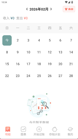 2、图表界面有周、月、年的收支统计