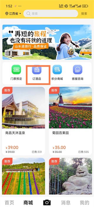 2、进入商城后,在功能选项中找到“订酒店”并点击选择。