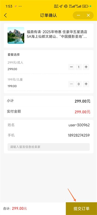 5、完成上述操作后,提交订单即可完成酒店预订流程。