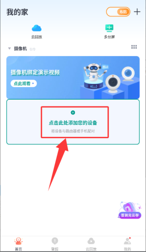 2、在应用主界面找到并选择设备添加入口,进入绑定方式选择页面。