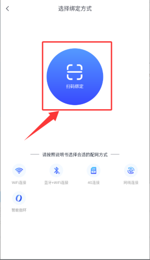 3、在绑定方式中选择“扫码绑定”功能,通过扫描设备二维码完成连接操作。
