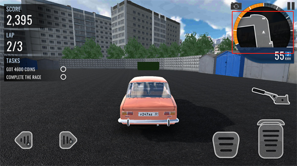 3、玩家需驾驶俄罗斯汽车进行跑圈,屏幕左边控制方向,右边则为油门和刹车;