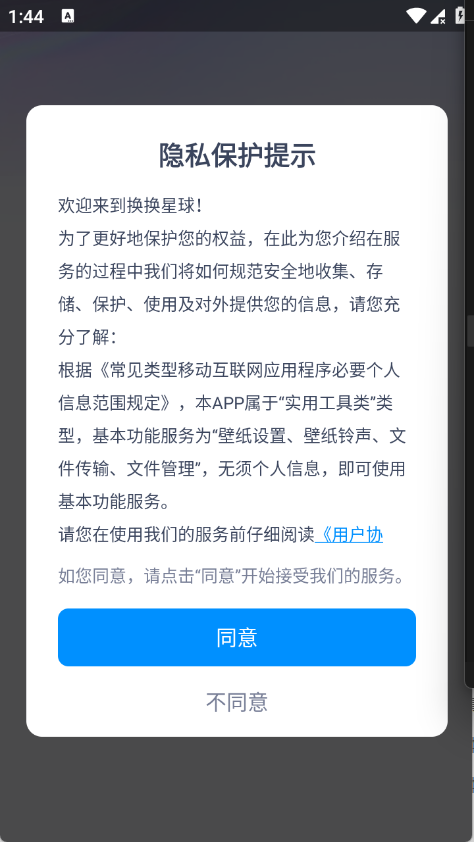 1、在本站下载安装换换星球app,首次打开后同意隐私政策,即可进入软件首页。