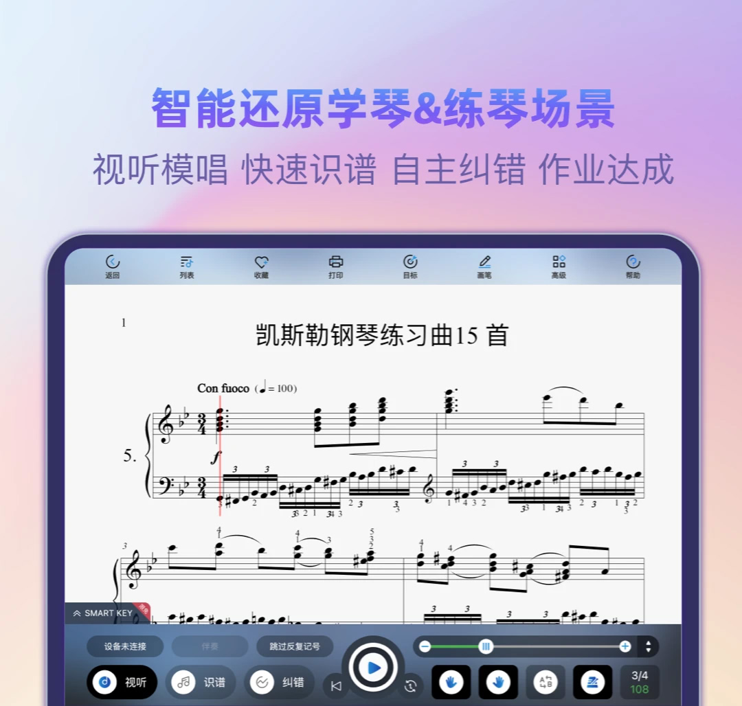 记录用户的练习时长、完成曲目及错误频率,形成可视化数据,便于回顾学习历程与发现薄弱环节。