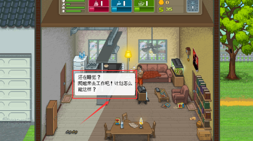 1、点击沙发上的角色,与其互动触发工作对话。