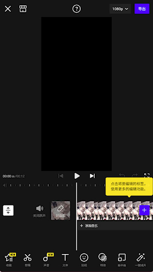 4、 音频编辑:支持添加背景音乐、音效和配音,调节音量和音频轨道。