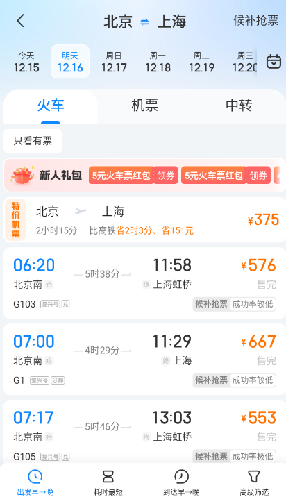 5、 紧急出行需求:遇到临时出行需求,快速抢票解决燃眉之急。