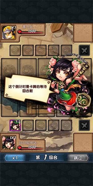 2、方格右上角显示的沙漏数字是卡牌的等待回合数的倒计时。