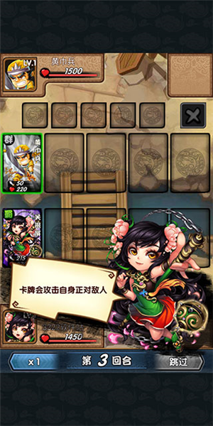 4、战斗以回合制进行,届时卡牌会自动攻击自身正对敌人。