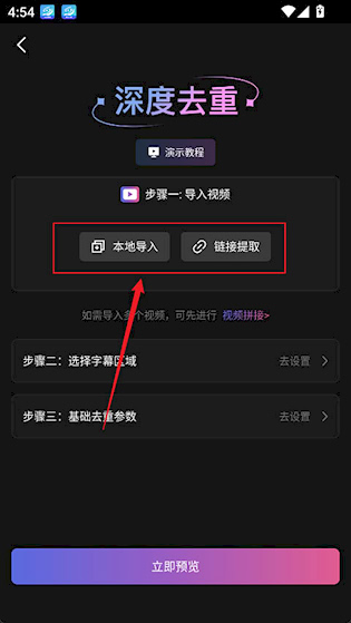 2、这里提供了两种导入方式,本地导入以及链接提取导入;