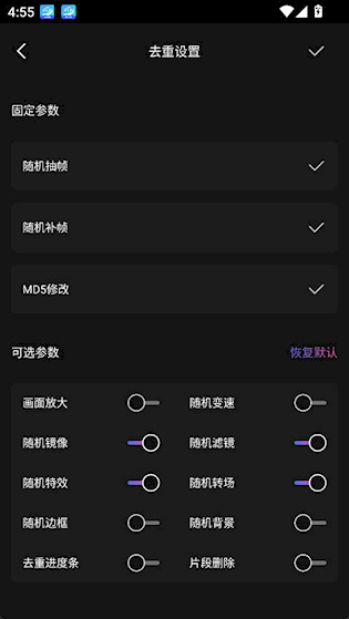 1、 一键去重:快速降低视频重复率,提升原创度,有效规避重复检测风险。
