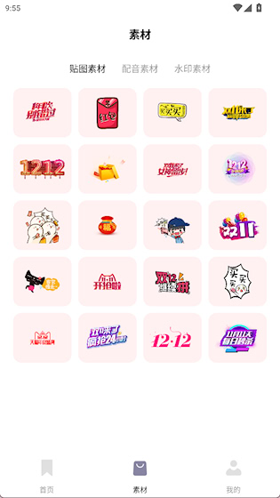 2、 丰富素材资源:海量贴纸、水印素材,包括节气、电商、可爱、促销、表情等多种类型。
