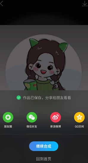 1. 制作完成后,点击右上角的“下载”,就可以进行导出保存,也可以进行分享或继续合成。