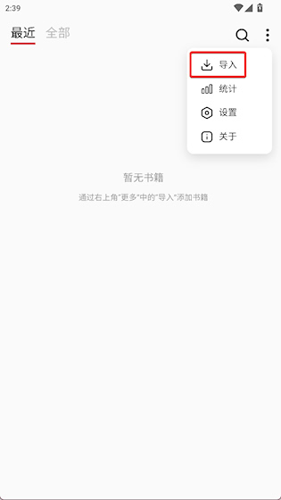 1、点击右上角三点按钮,选择导入