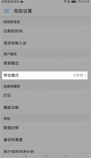 1、打开设置-高级设置找到学生模式点击进入,按照系统引导完成密码设置进入学生模式