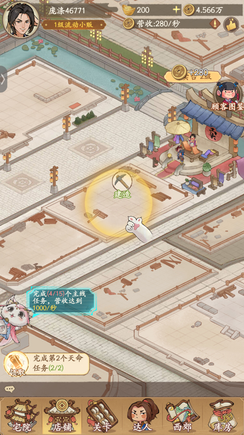 2、 经营运营:点击店铺即可开展经营活动,不同店铺有着各自专属的特色经营方式和盈利路径。