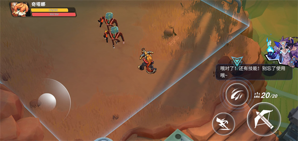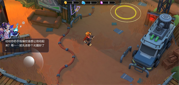 1、进入游戏界面,会有npc进行新手指引,练习操控需要摇杆;