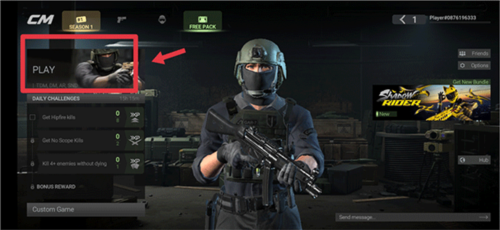 1、首先打开游戏,需加速器启动,在游戏主界面中,点击paly开始匹配玩家;