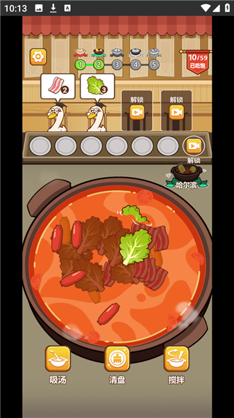 5、如果锅里的食材无法完成顾客的需求可以点击右下角搅拌。