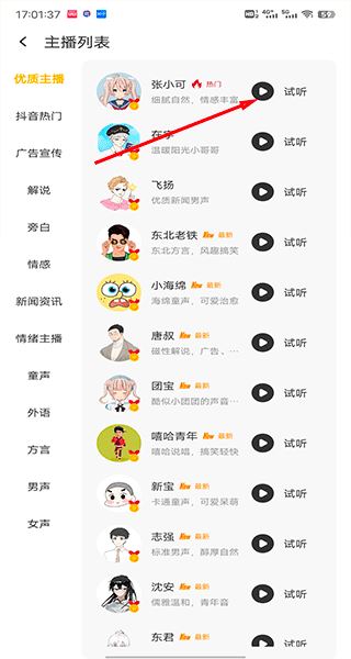 2、包含短视频热门主播声线,数十位情绪主播可调节,适配不同语境。