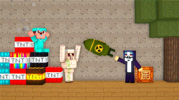 2、进入场景后,选择并使用不同角色(如TNT爆炸角色、黑客角色等),通过组合道具与动作触发特殊事件或剧情演出。