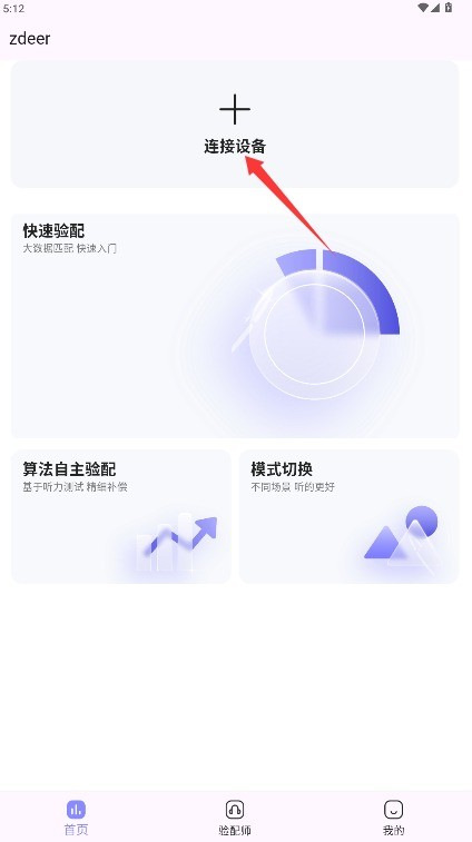 3、进入应用首页,找到并点击连接设备功能按钮,进入设备配对与连接操作界面。