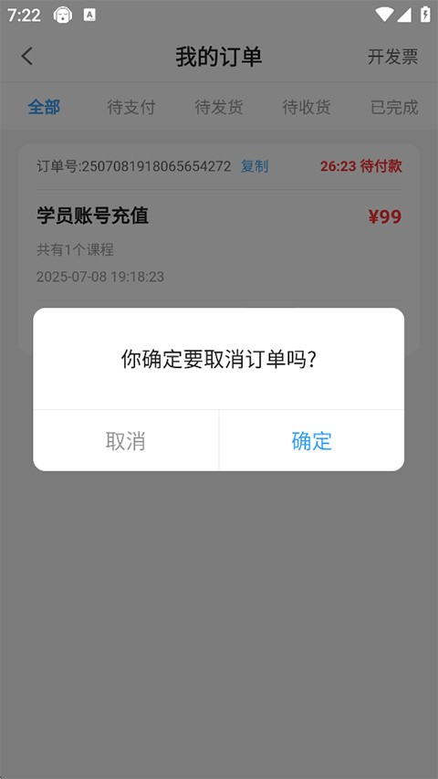 3、在弹出的确认窗口中点击“确定”,提交取消或退款申请。