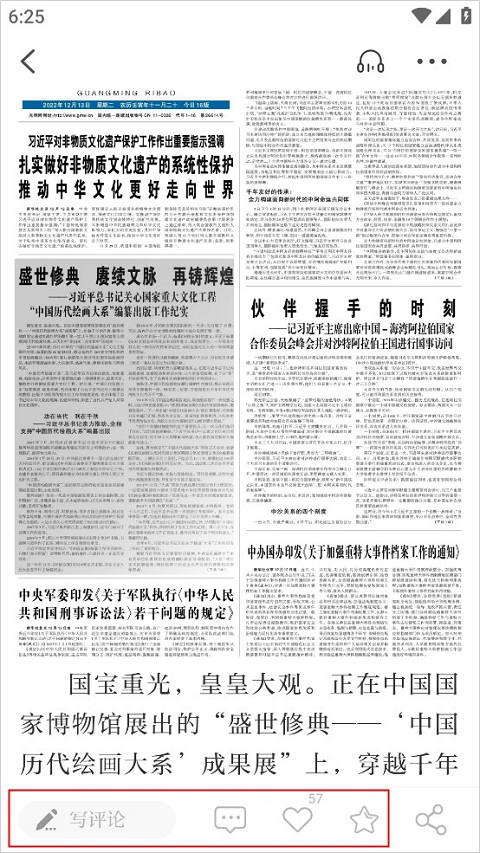 4、打开的报纸版面可发布评论,也能进行点赞与收藏,方便互动与留存。