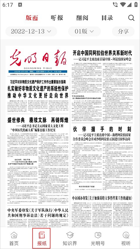 1、新版本对报纸板块做独立区分,在 App 底部设有专属入口,可快速找到对应板块。