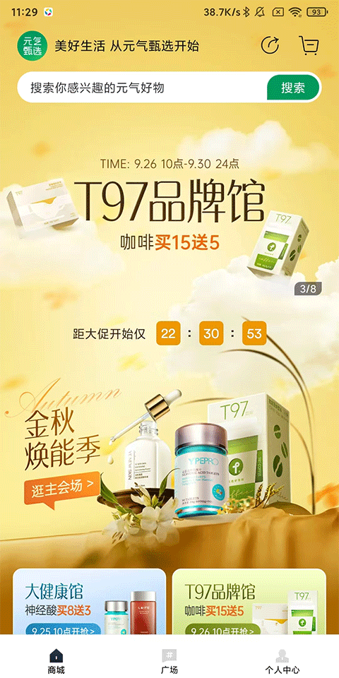 1、首页商城里提供丰富的活动推荐,通过上方输入框进行搜索