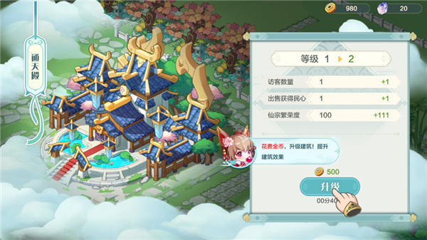 5、赚取的金币可用来升级通天殿等级,提升建筑效果。现在开始你的宗门经营之旅吧!