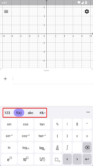 1、打开应用后,在输入区域通过不同的选项卡里的功能输入数学公式